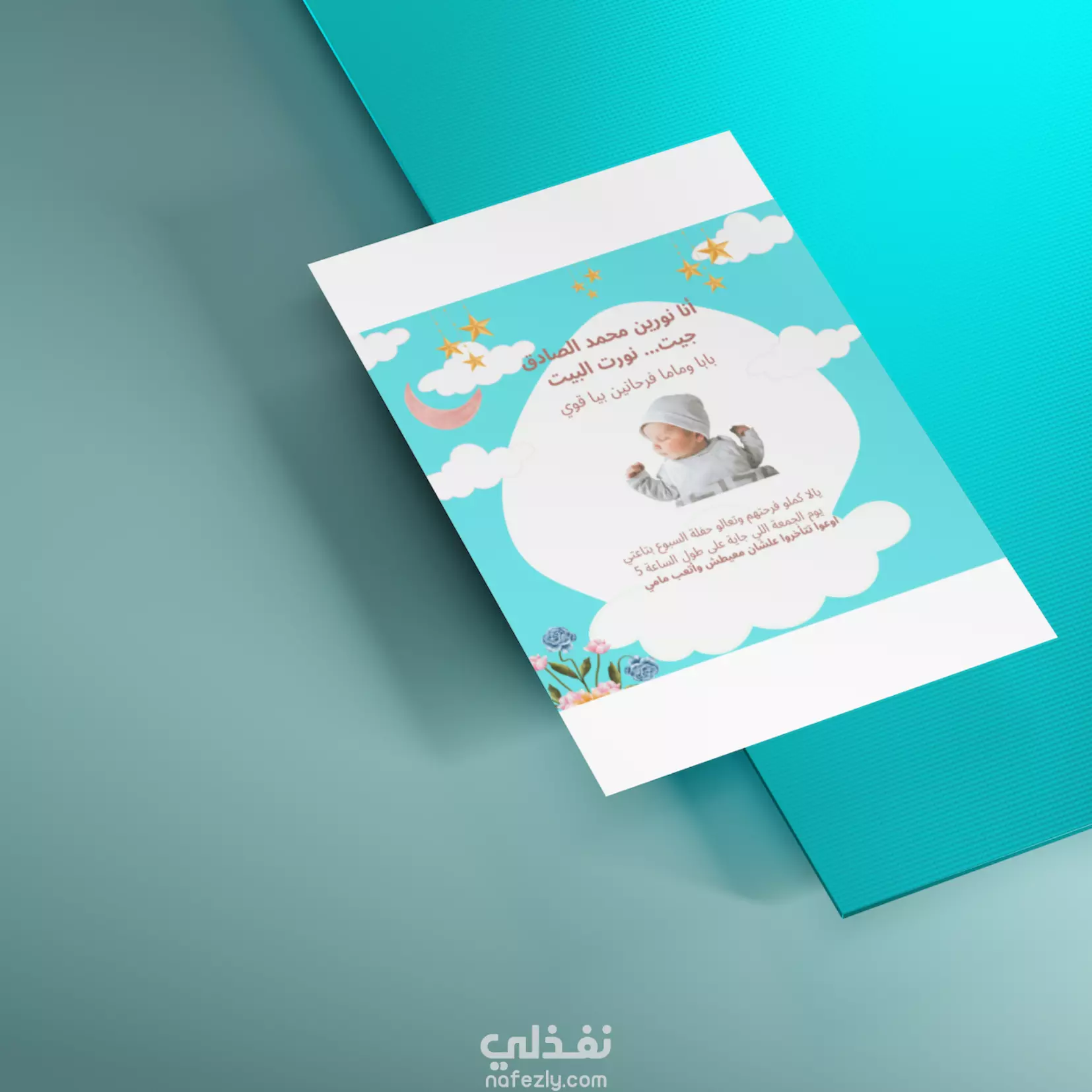 دعوة حضور مناسبه ميلاد طفل جديد باللون المفضل للعميل