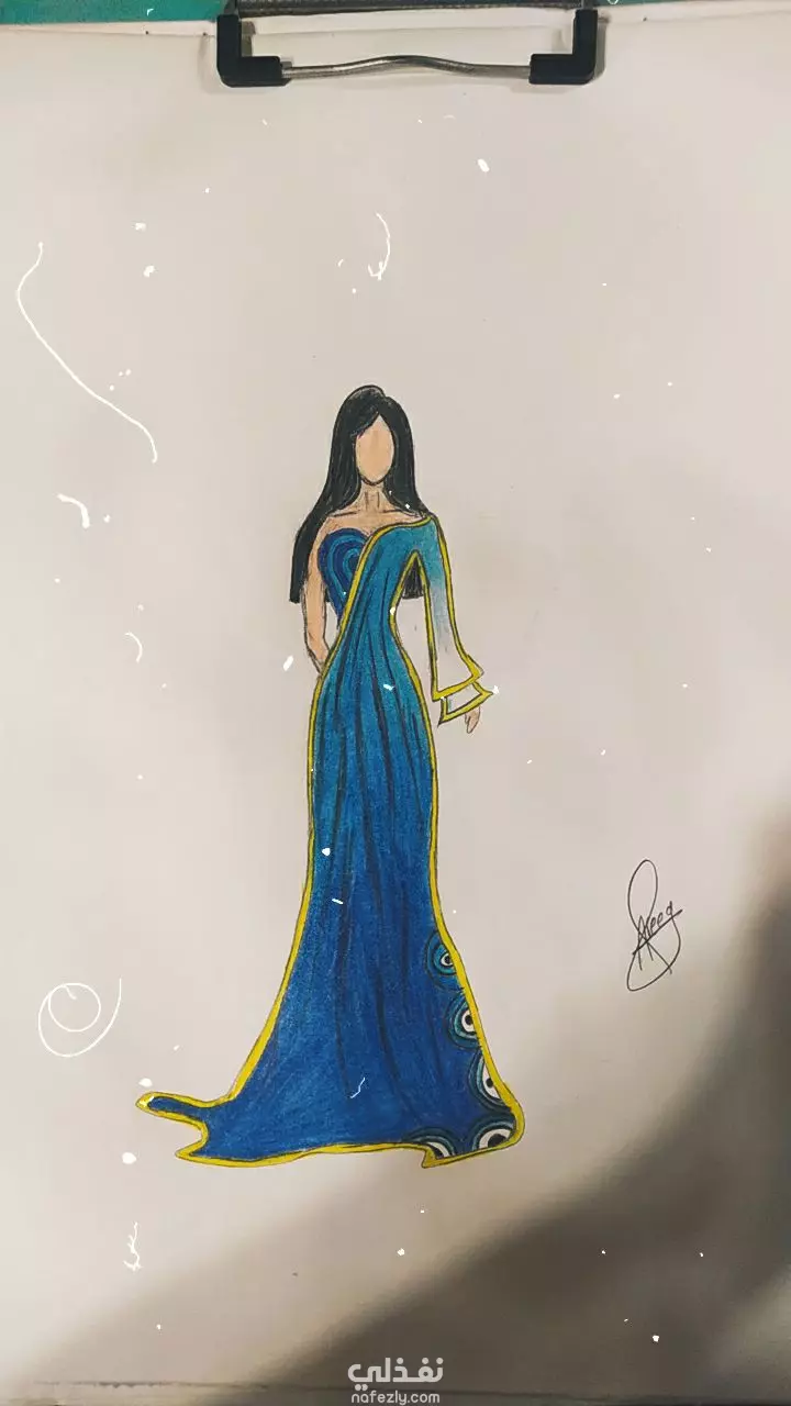 عندى موهبة الرسم و بدأت اصمم فساتين مش تقليدية و بدأت بتعمل مهارات الرسم من صغري و بصمم فساتين سيمبل جدا و الوانها مميذة