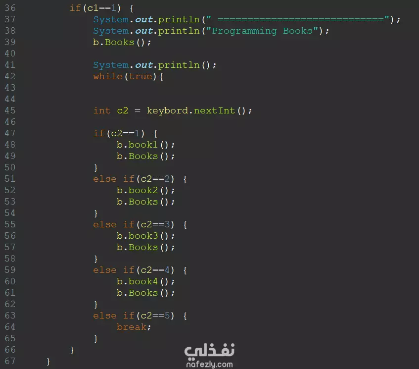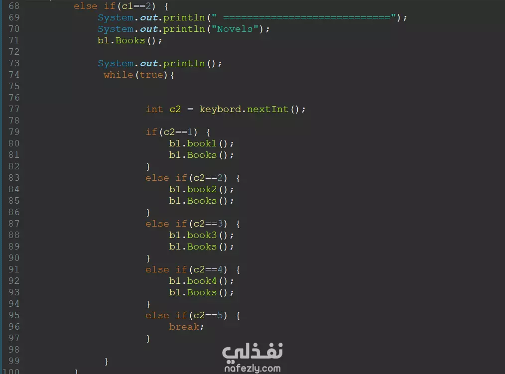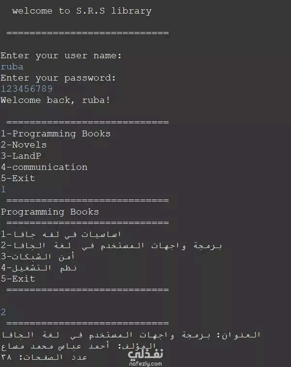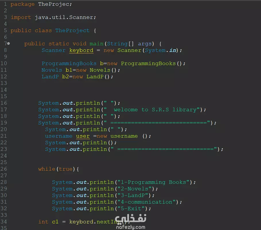 يعتمد عملي في هذا المشروع على كتابه اكواد بلغه جافا لنظام مبدئي لمكتبه تحتوي على عده اقسام من اقسام الكتب قمت بإضافه جزء بسيط من صور المشروع ارجو الاطلاع عليها