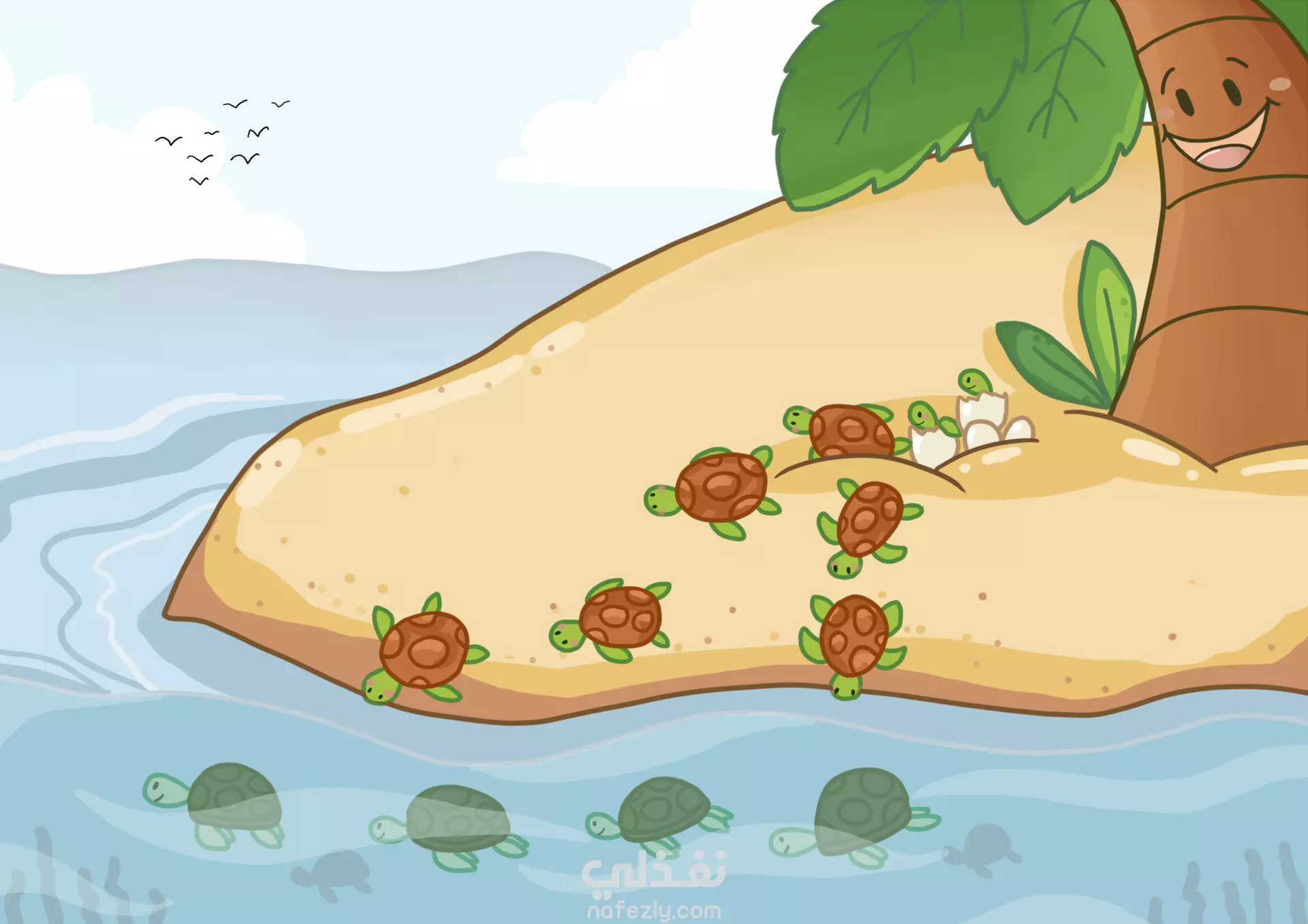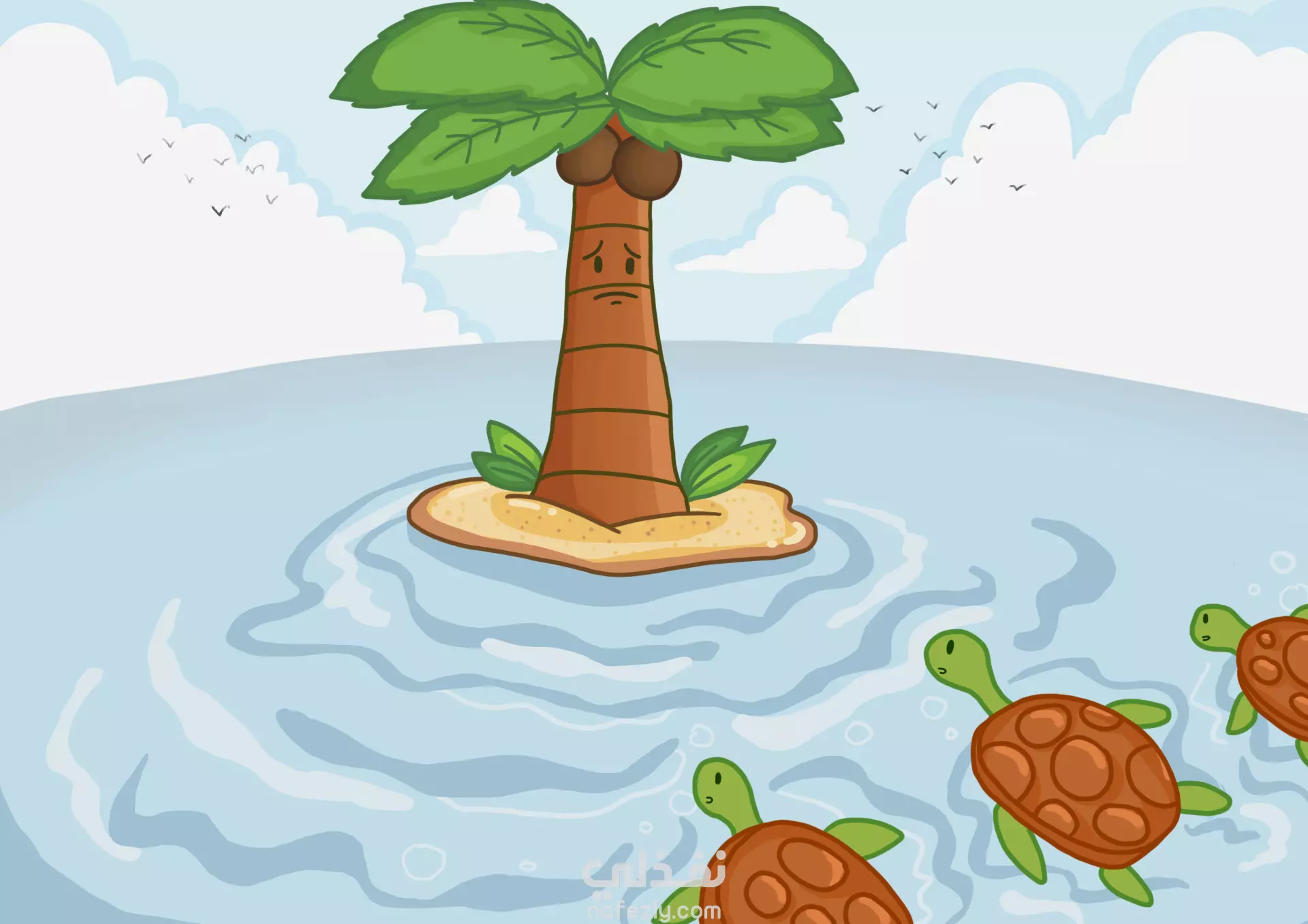قمت بتصميم ورسم مشاهد عدة لقصة موجهة للأطفال بعنوان جزيرة السلاحف.