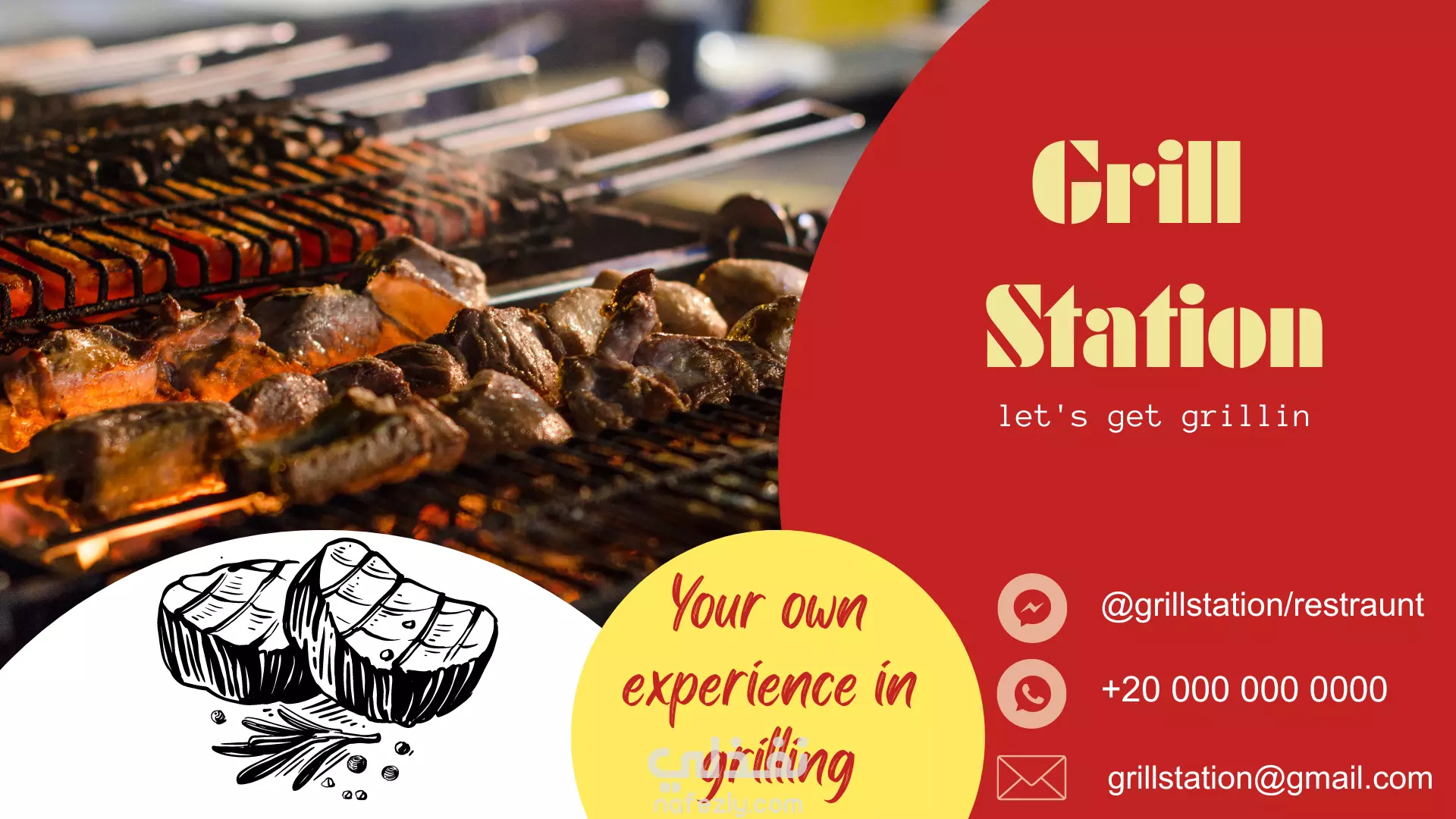 صممت اعلان لمطعم شوي و تأكد بأدخال الطفاصيل المهمة مثل ركم الهاتف بتناسك الالوان احترافيا