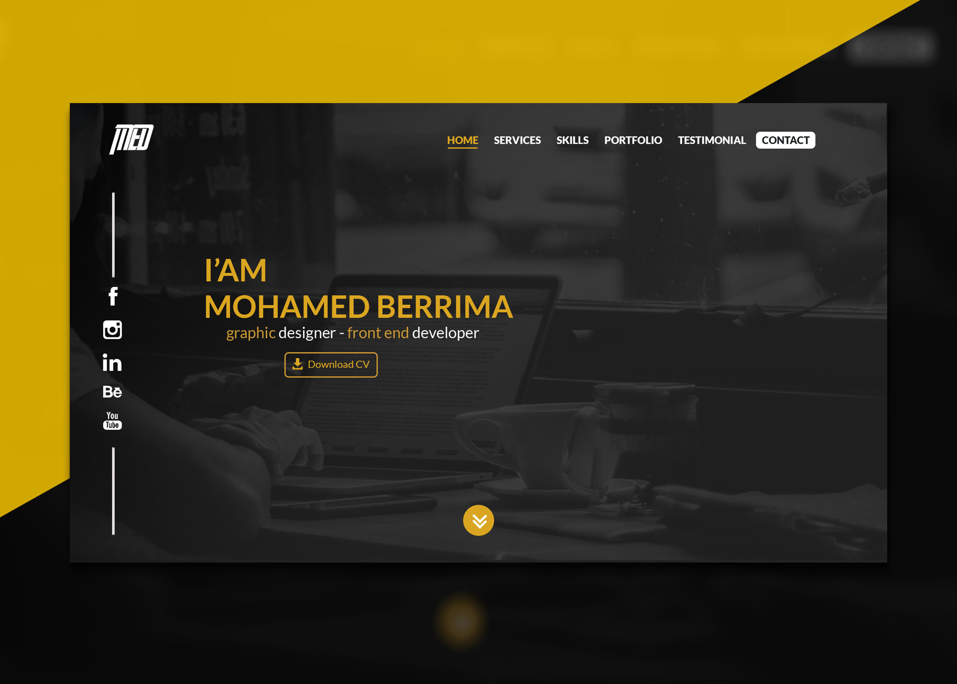 موقع شخصي سهل في تجربة الاستخدام يعرف بالخدمات , السيرة الذاتية , المهارات التي اكتسبها , المشاريع , تقييم العملاء و الخبراء مع تمكين الزوار بالاتصال بصاحب الموقع