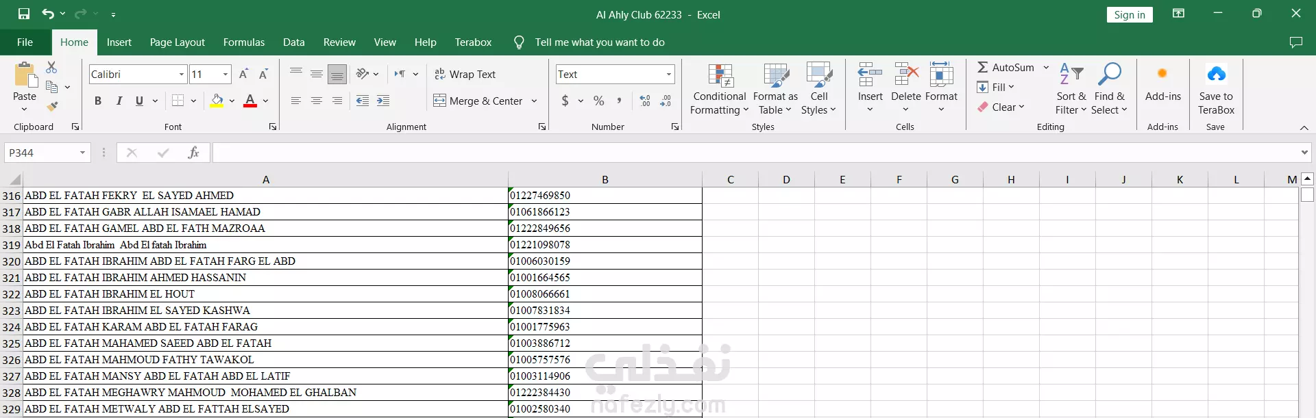 بينات اعضاء النادى الاهلى المصرى البيانت عباره عن : * اسم الشخص * رقم الهاتف ما عدد البيانات : 62233 بيان لاعضاء النادى الاهلى المصرى