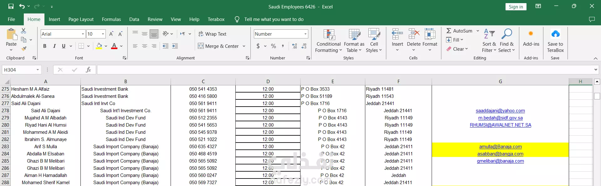 موظفين سعودين البيانات عباره عن : * اسم الشخص * رقم الهاتف للشخص * جهة عمل الشخص * عنوان الشخص * ميل الشخص ان وجد عدد البيانات : 6426 بيان موظفين فى دولة السعوديه