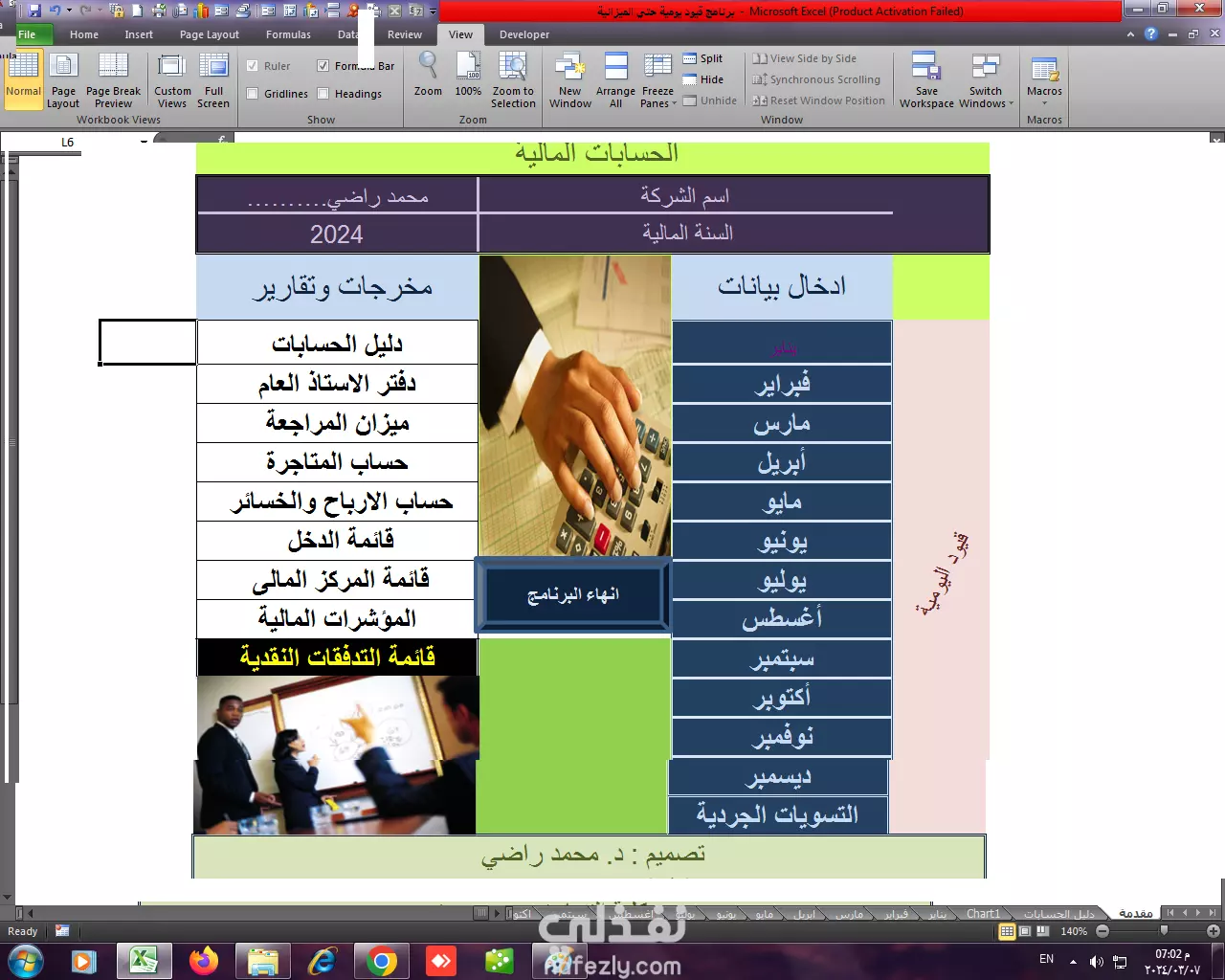 برنامج محاسبي اكسل تسجيل قيود والتقارير والقوائم المالية