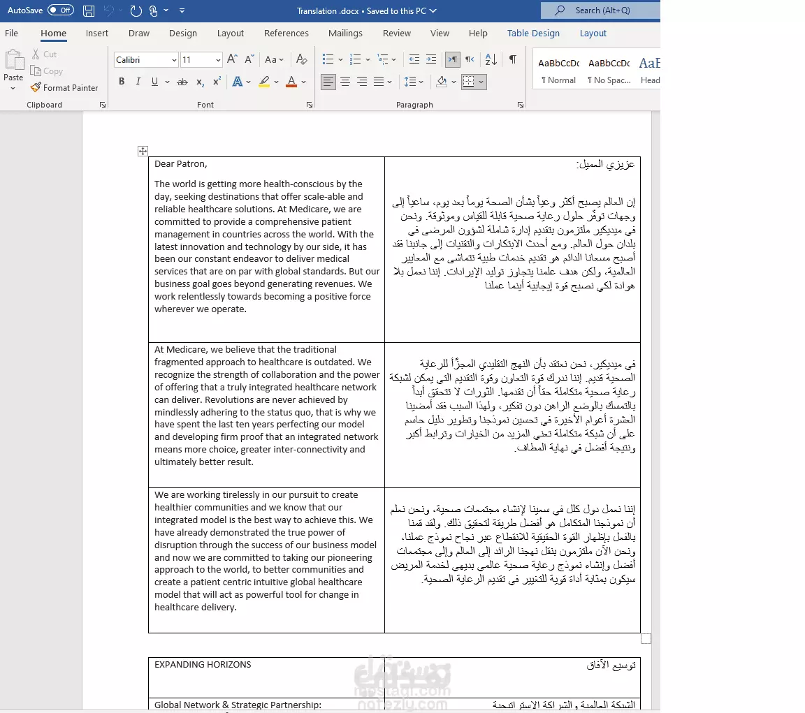 ترجمة أربعة صفحات من اللغة الإنجليزية إلى العربية