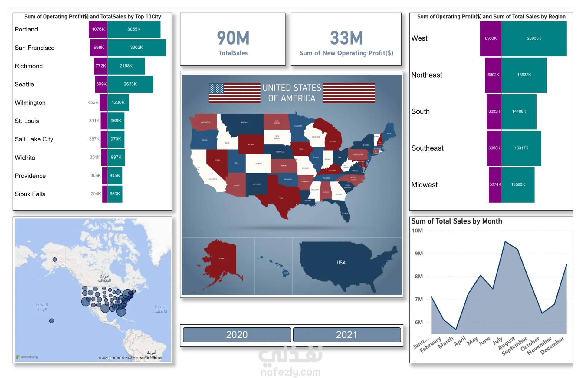 ملخص تنفيذي لوحة معلومات تفاعلية تعطي رؤية شاملة لمؤشرات المبيعات والأرباح عبر الأبعاد الرئيسية مثل طرق البيع، تجار التجزئة، المنتجات، المدن، والمناطق، مع تحليل شهري وفصلي يساعد في قرارات تسعير وتوزيع أكثر دقة. تُمكّن من تتبع الهوامش، النمو، واتجاهات الطلب جغرافيًا وزمنيًا، ما يدعم التخطيط البيعي وإدارة المحافظ الربحية. المشكلة والهدف التحدي: تشتت بيانات القنوات والمنتجات والمناطق يصعّب بناء رؤية موحّدة للأداء والربحية، ويؤخر القرار التشغيلي. الهدف: توحيد البيانات في نموذج تحليلي يوفر KPIs واضحة، مقارنة الفترات، وتحليل جغرافي ومنتجي مع Drill-down حتى مستوى العميل/البند عند الحاجة. مؤشرات وقياسات رئيسية إجمالي المبيعات، الربح، وهامش الربح، مع نمو شهر-على-شهر وسنة-على-سنة ومؤشرات تحقيق الأهداف. المبيعات والربح حسب القناة، المنتج/الفئة، المنطقة/المدينة، والبائع/التاجر لإبراز أكثر المزيجات ربحية. متوسط قيمة الصفقة، معدل التحويل، طول دورة البيع، ومساهمة أفضل 20% من العملاء في الإيراد والربح إذا توفرت بيانات القمع البيعي. النموذج والمنهجية تجهيز البيانات: تنظيف الحقول وتوحيد العملات والتقاويم، اشتقاق تواريخ مرجعية مثل بداية/نهاية الربع، وإنشاء جداول تواريخ لإمكانات مقارنة قوية. النمذجة في Power BI: جدول حقائق للمبيعات مرتبط بأبعاد التاريخ، المنتج، العميل/التاجر، المنطقة، والقناة، مع مقاييس DAX للهوامش، النمو، وتحقيق الأهداف. التصورات: بطاقات KPIs، مخططات خطية للاتجاهات، أشرطة مصنّفة لأفضل المنتجات/المدن، خرائط جغرافية للمبيعات والربح، وجداول تفصيلية مع Drill-through. أبرز النتائج المتوقعة تحديد القنوات والمنتجات والمدن الأعلى ربحية بسرعة لاتخاذ قرارات تخصيص المخزون والحملات التسويقية. تحسين الهوامش عبر كشف مزيج المنتجات غير الفعّال وتعديل التسعير أو الخصومات بناءً على مساهمة الربح. تسريع التقارير الإدارية الشهرية مع مقارنة دقيقة للفترات وتتبّع تحقيق الأهداف البيعية. المزايا التفاعلية فلاتر ديناميكية للسنة، الربع، الشهر، المنطقة، القناة، والفئة، مع حالة اختيارية لإظهار العملاء أو التجار الأعلى مساهمة. مؤشرات حالة الأهداف بلوني النجاح/التحذير، وTooltips سياقية تعرض الهوامش ومقارنات الفترة السابقة دون ازدحام بصري. قابلية الربط بمصادر متعددة مثل ERP/CRM وملفات Excel، ودعم التحديث المجدول للنشر المؤسسي. دوري والمسؤوليات جمع المتطلبات، تصميم نموذج البيانات، تطوير مقاييس DAX، تصميم الواجهة التفاعلية، وضمان الدقة عبر اختبارات التتبع والتصالح مع سجلات المصدر. ما الذي سيحصل عليه العميل ملف PBIX منظم، دليل استخدام مختصر، وخيار إعداد نشر آمن على Power BI Service مع أدوار وصول مناسبة. إمكانية تخصيص KPIs، إضافة شرائح جديدة، وربط مصادر إضافية حسب احتياج الفريق التجاري
