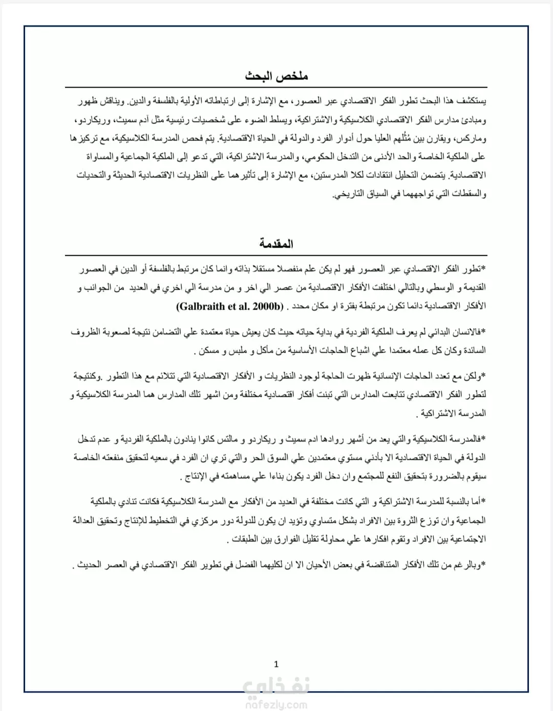 تم في هذا البحث الحديث عن مدرستين من اهم المدارس في تاريخ الفكر الاقتصادي وهما المدرسة الكلاسيكية و المدرسة الاشتراكية و تم عرض تعريف المدرستين و تاريخ نشأتهما و اهم المفكرين فيهما و اهم مبادئهم و اسباب انهيارهم و في النهايه تم عرض اوجه اختلاف فيما بينهم