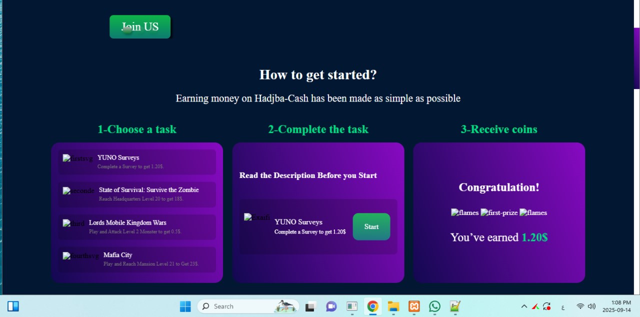 شكرًا على طرحك للفكرة. يمكنني تنفيذ موقع ربحي متكامل يتيح للمستخدمين الحصول على نقاط/أرباح مقابل تنفيذ المهام مثل الألعاب أو الاستبيانات، مع نظام ...