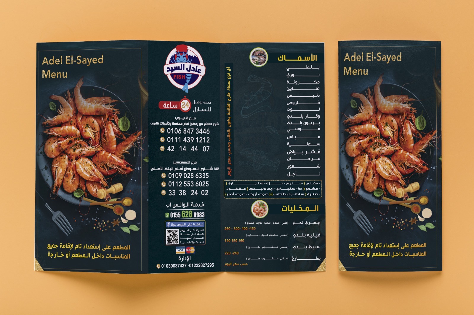 مرحبا .. يسعدني ان اقوم بتحديث المنيو الخاص بمطعم عادل السيد للاسماك و اضافة لمسة عصرية و انيقة الى المنيو تعكس مستوى المطعم مع المحافظة على الهوية...
