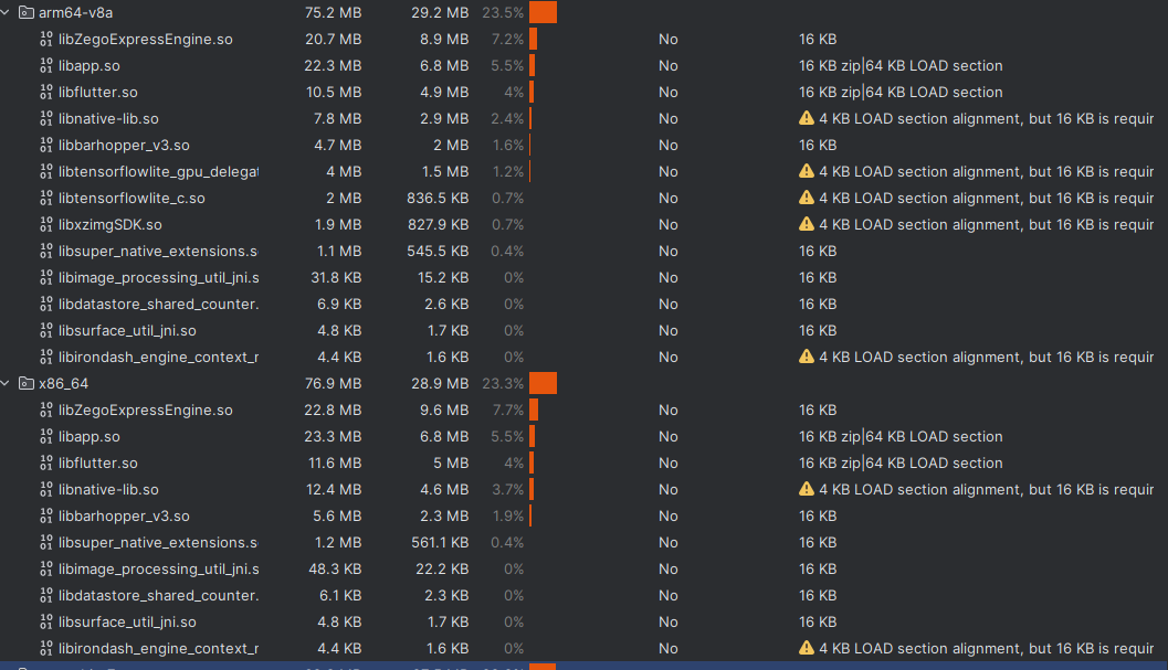وعليكم السلام ورحمة الله وبركاته أنا شوفت المشكلة اللي عندك في Flutter والـ 16KB Page Size، وواضح من الصورة إن السبب من محاذاة ملفات الـ .so في مك...