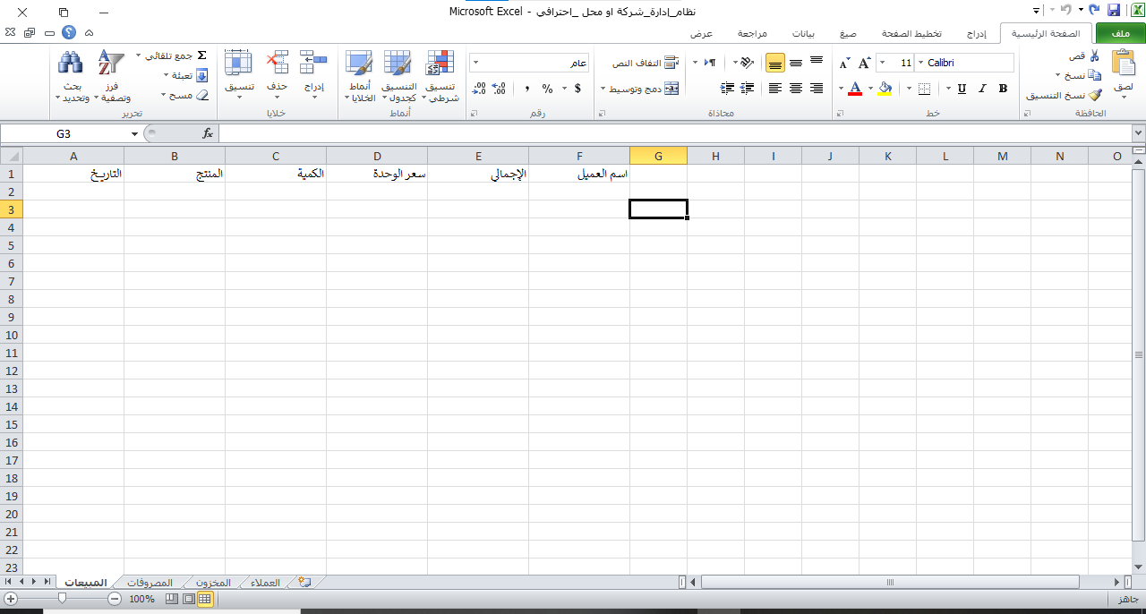 نظام ادارة شركة او محل او مخزن بشيتات اكسيل احترافي وسهل التعامل