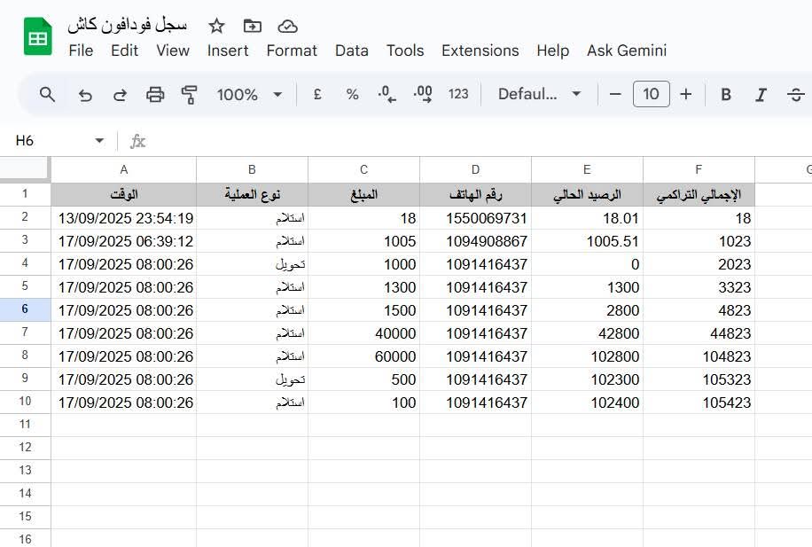 أهلاً بحضرتك، اقدر أساعد في تنفيذ نظام متكامل لقراءة رسائل فودافون كاش وربطها بجوجل شيت، ومعالجة البيانات وإنشاء داشبورد، وكمان نظام اشتراكات وبوت...