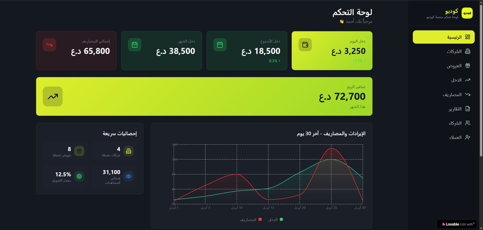 مرحبًا أستاذ Ali Faisal، اطلعت بعناية على تفاصيل مشروعك وعلى لوحة التحكم التي قمت ببنائها باستخدام أداة lovable.dev، ومن خبرتي في هذا النوع من ...