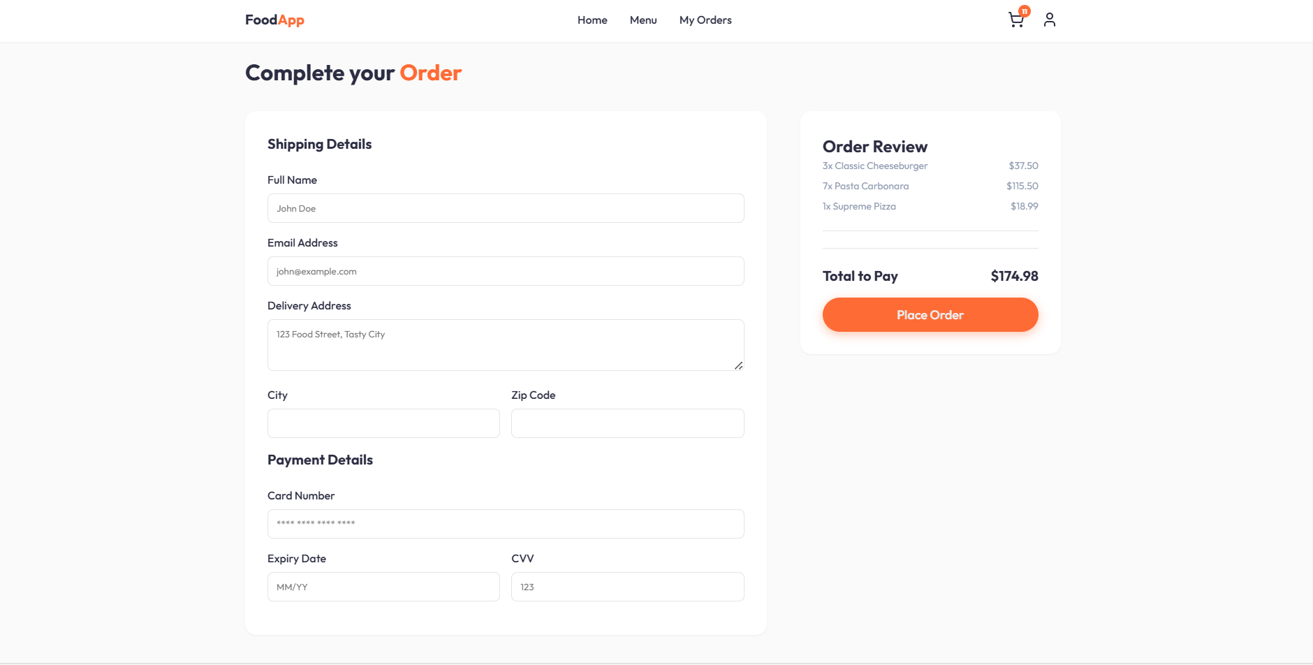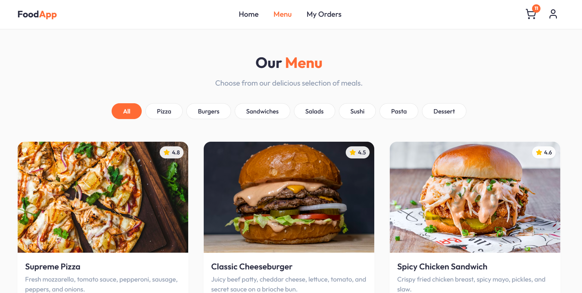 تنفيذ واجهة أمامية (Front-End) احترافية لموقع بيع أطعمة باستخدام React.js
