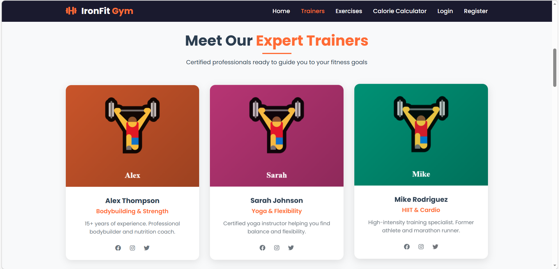 السلام عليكم , أنا شغال Front-End بـ React و Next.js، اقدر أنفذلك مشروعك هعمل تسجيل دخول، صفحة للمدربين بتفاصيلهم، عرض التمارين، وكمان حاسبة س...