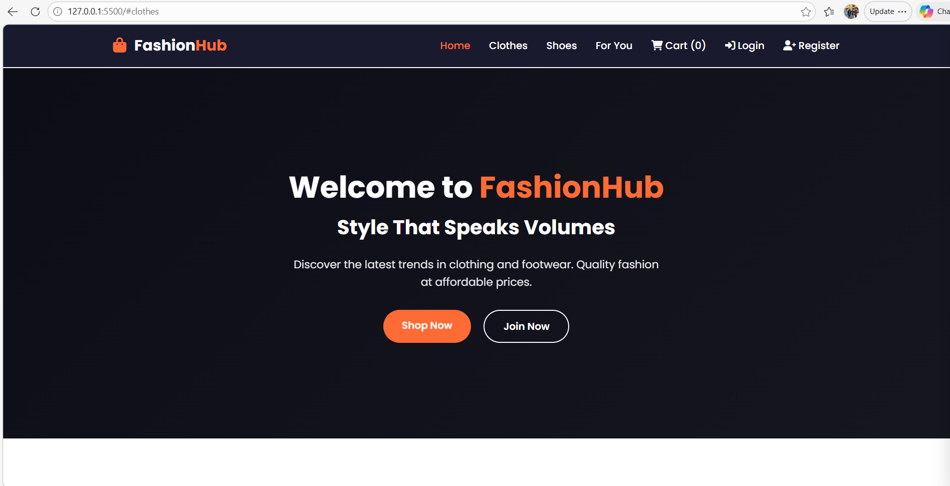 صفحة ويب لمحل يبيع ملابس واحذيه