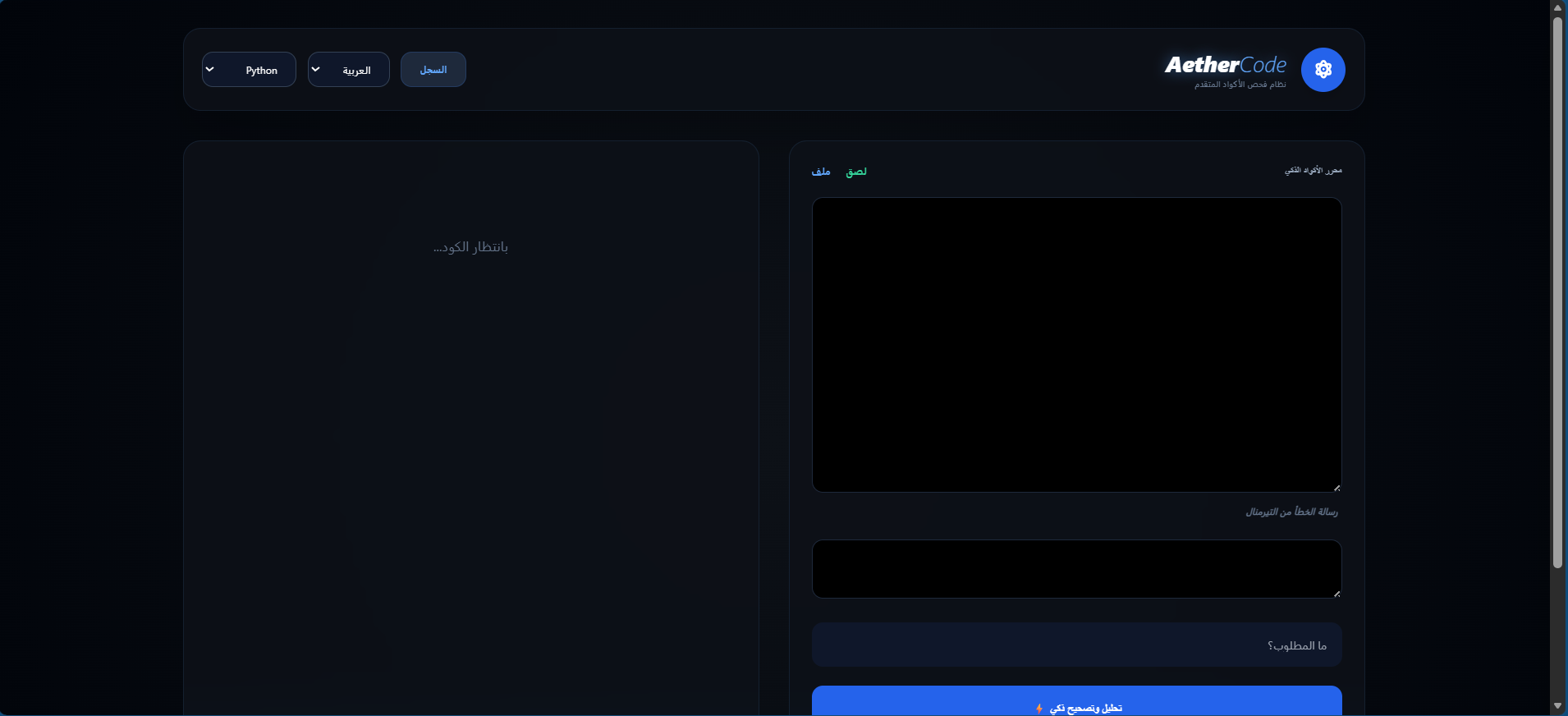 "AetherCode AI - مشروع SaaS جاهز لتصحيح الأكواد بالذكاء الاصطناعي".