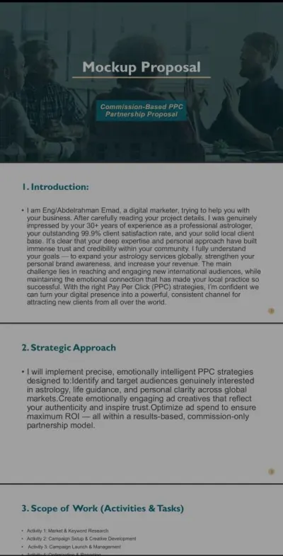 تصميم موكاب عرض تسويقي لخطة إدارة حملات PPC بنظام العمولة