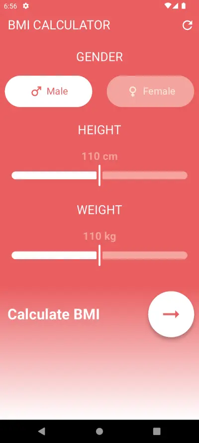 تطبيق حساب مؤشر كتلة الجسم (BMI Calculator)