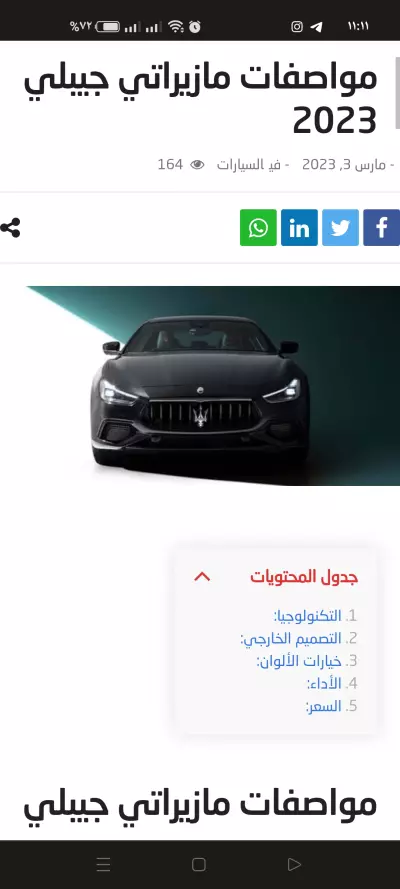 مقالة عن مواصفات سيارة مازيراتي جيبلي 2023 متوافق مع قواعد السيو